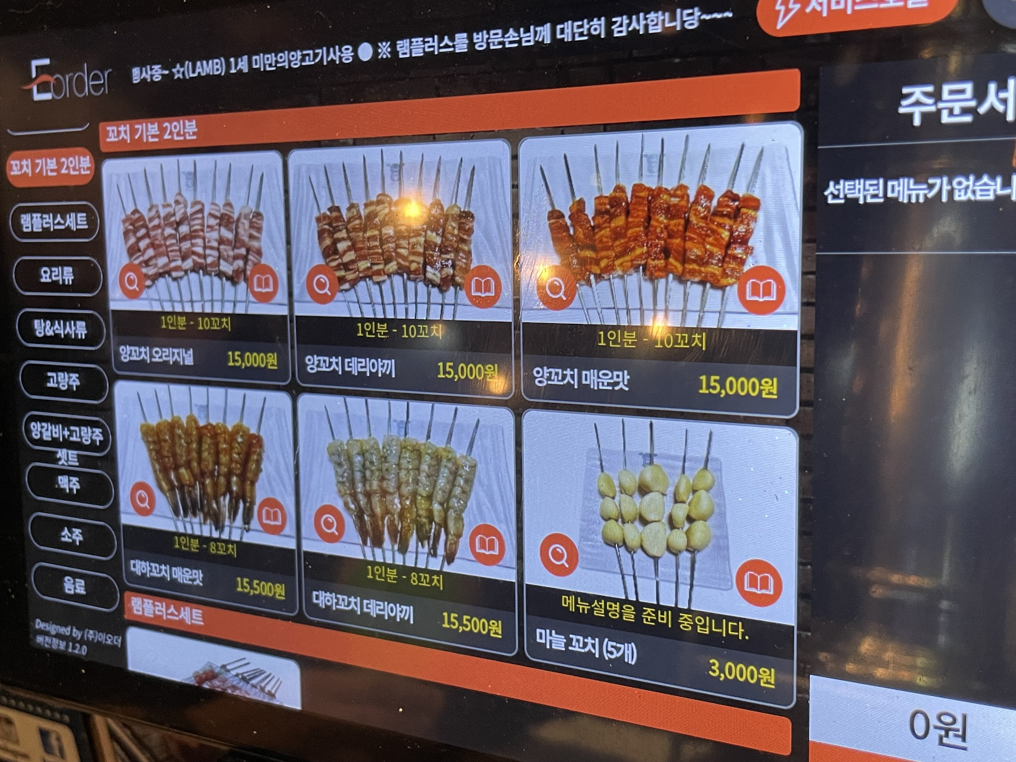 양꼬치 종류도 많았어요